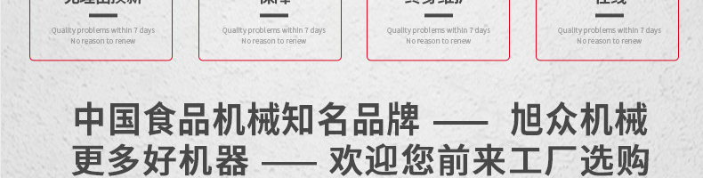 廣州旭眾食品機(jī)械有限公司是一家集科研開發(fā),生產(chǎn)設(shè)計(jì),營銷服務(wù)為一體的現(xiàn)代化生產(chǎn)企業(yè)?,F(xiàn)代化生產(chǎn)車間,精湛制造技術(shù),所產(chǎn)機(jī)械歷經(jīng)市場重重考驗(yàn),不斷贏得海內(nèi)外客戶的贊譽(yù)。