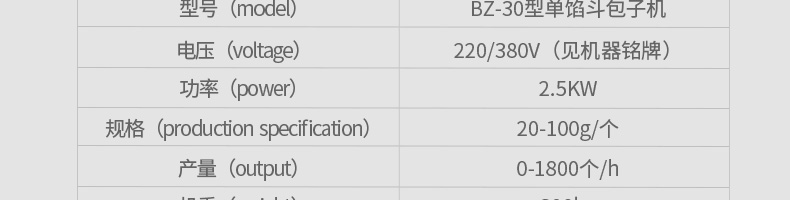 BZ-30型單餡斗包子機,可生產豆沙包、南瓜餅、肉包、小籠包、菜包、圓饅頭、奶黃包、叉燒包、湯包、水晶包等幾十種包餡制品。適用于個體戶、速凍食品廠、學校等各種工作場所??蓾M足不同客戶群體。免費提供工藝技術。