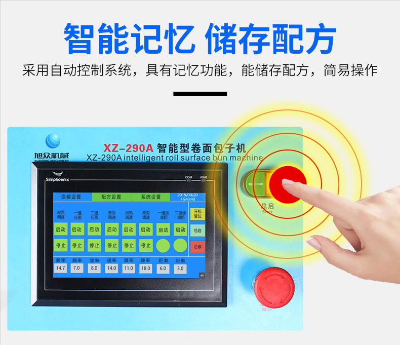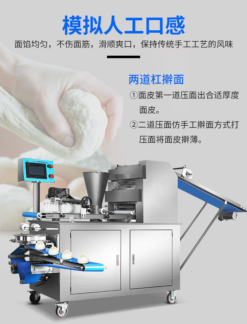 XZ-290A智能型卷面包子機,仿手工智能包子機。操作簡單、精準(zhǔn)控制、快速成型、模擬人工。好機器,表里如一,專注品質(zhì)機器,客戶現(xiàn)場試機。一臺包子機輕松解決手工和面/包餡/人工效率低,用人成本高等一系列問題。