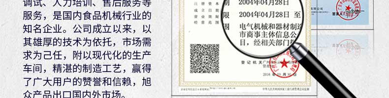 廣州旭眾食品機(jī)械有限公司是一家集科研開發(fā),生產(chǎn)設(shè)計,營銷服務(wù)為一體的現(xiàn)代化生產(chǎn)企業(yè)。現(xiàn)代化生產(chǎn)車間,精湛制造技術(shù),所產(chǎn)機(jī)械歷經(jīng)市場重重考驗,不斷贏得海內(nèi)外客戶的贊譽(yù)。