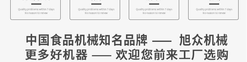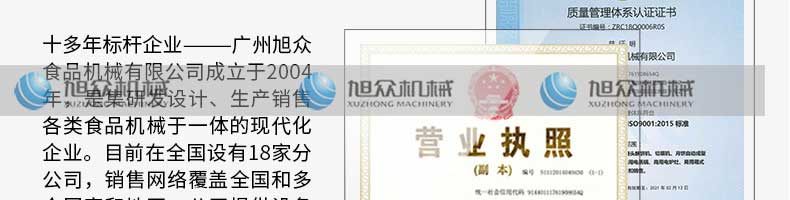 廣州旭眾食品機(jī)械有限公司是一家集科研開發(fā),生產(chǎn)設(shè)計(jì),營銷服務(wù)為一體的現(xiàn)代化生產(chǎn)企業(yè)?,F(xiàn)代化生產(chǎn)車間,精湛制造技術(shù),所產(chǎn)機(jī)械歷經(jīng)市場(chǎng)重重考驗(yàn),不斷贏得海內(nèi)外客戶的贊譽(yù)。