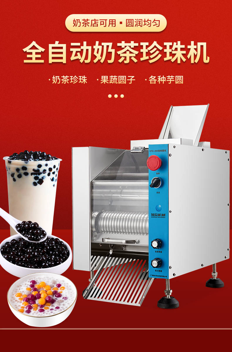 VFD-900珍珠奶茶機(jī),奶茶店、甜品店可用。可生產(chǎn)奶茶珍珠,果蔬圓子,無(wú)餡湯圓,水晶湯圓,各種芋圓。不占空間、體積小、重量輕,桌面上的小奶茶珍珠機(jī)。告別手工繁瑣的工序,省時(shí)省力,輕松解決手工麻煩,成本高等一系列問(wèn)題