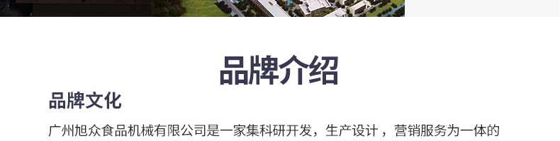 廣州旭眾食品機(jī)械有限公司是一家集科研開發(fā),生產(chǎn)設(shè)計(jì),營(yíng)銷服務(wù)為一體的現(xiàn)代化生產(chǎn)企業(yè)?,F(xiàn)代化生產(chǎn)車間,精湛制造技術(shù),所產(chǎn)機(jī)械歷經(jīng)市場(chǎng)重重考驗(yàn),不斷贏得海內(nèi)外客戶的贊譽(yù)。