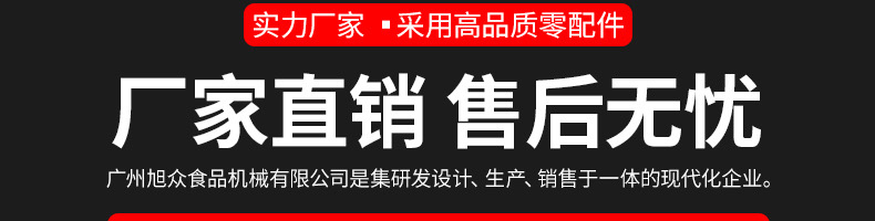 廣州旭眾食品機(jī)械有限公司是一家集科研開(kāi)發(fā),生產(chǎn)設(shè)計(jì),營(yíng)銷服務(wù)為一體的現(xiàn)代化生產(chǎn)企業(yè)?,F(xiàn)代化生產(chǎn)車(chē)間,精湛制造技術(shù),所產(chǎn)機(jī)械歷經(jīng)市場(chǎng)重重考驗(yàn),不斷贏得海內(nèi)外客戶的贊譽(yù)。