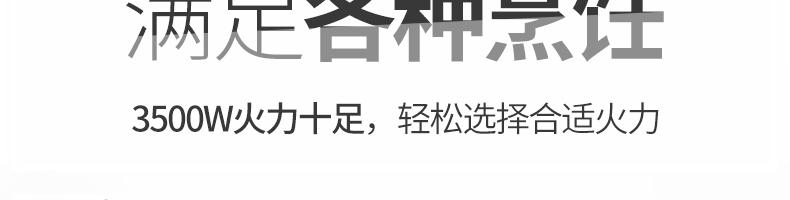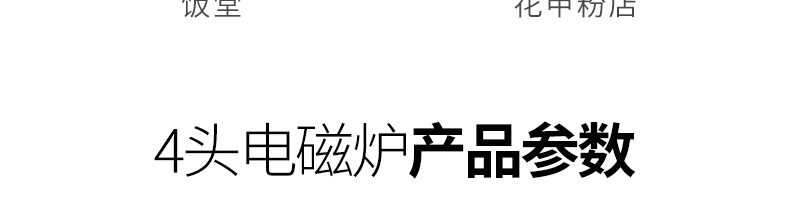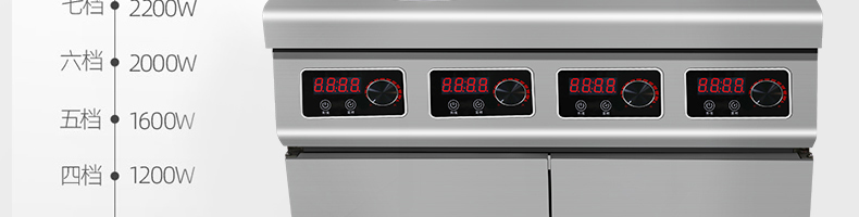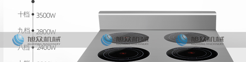 四頭柜式電磁爐,10檔調(diào)節(jié),滿足各種烹飪。3500W火力十足,輕松選擇合適火力。同時工作互不干擾單獨(dú)磁爐控制面板,設(shè)置不同大小檔數(shù),同時工作,互不干擾。