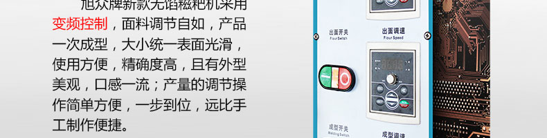 XZ-5000A糍粑機(jī),可生產(chǎn)糯米糍粑、蛋酥糍粑、酥糖糍粑、板栗糍粑、黃豆糍粑、麥香糍粑等各種無餡糍粑制品。適用于商場、超市、酒店、影劇院、學(xué)校、圖書城、游樂園、旅游景點等各種場所。免費(fèi)提供工藝技術(shù)。免費(fèi)上門培訓(xùn)指導(dǎo)安裝。