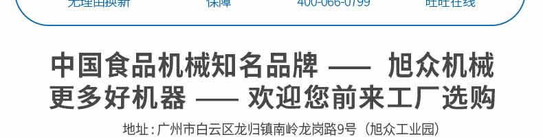 廣州旭眾食品機(jī)械有限公司是一家集科研開發(fā),生產(chǎn)設(shè)計,營銷服務(wù)為一體的現(xiàn)代化生產(chǎn)企業(yè)?,F(xiàn)代化生產(chǎn)車間,精湛制造技術(shù),所產(chǎn)機(jī)械歷經(jīng)市場重重考驗(yàn),不斷贏得海內(nèi)外客戶的贊譽(yù)。