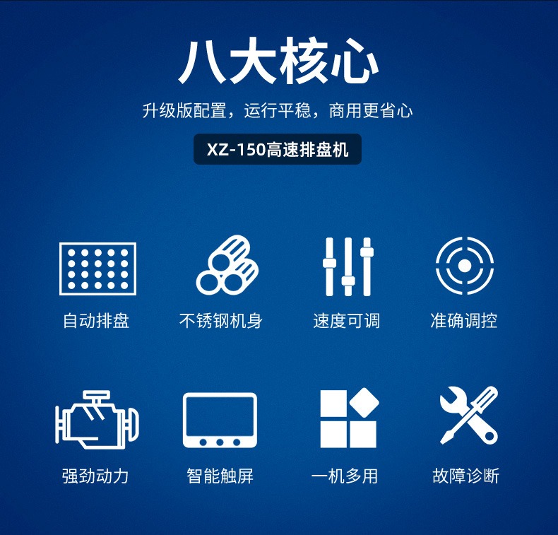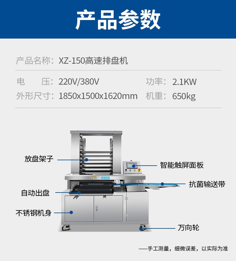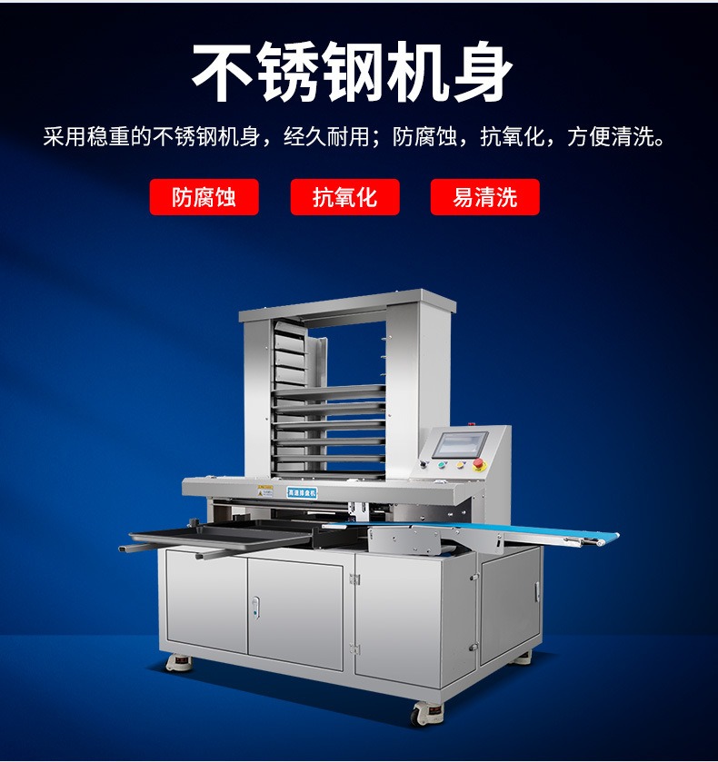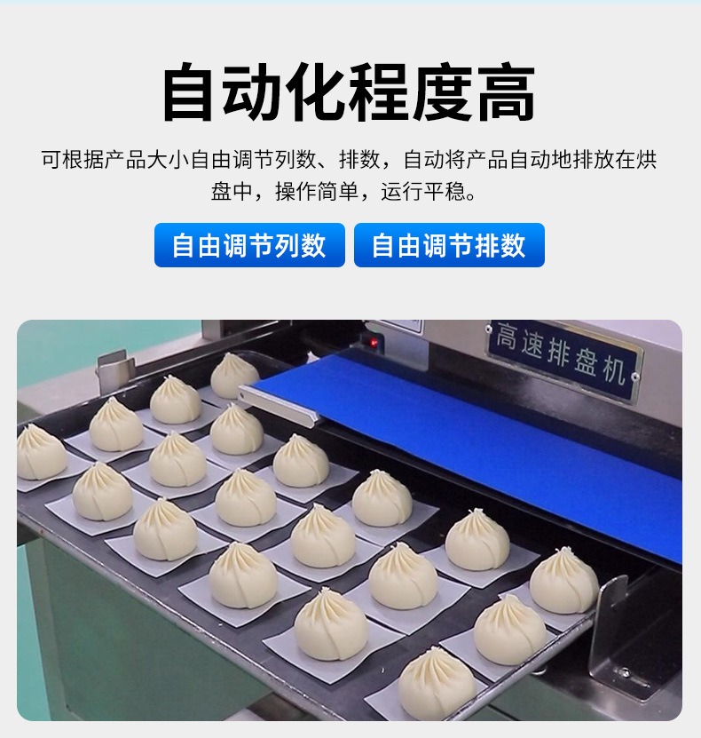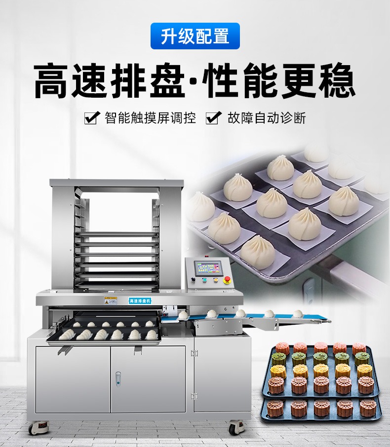 多功能商用高速排盤機(jī),自動(dòng)化程度高,可根據(jù)產(chǎn)品大小自由調(diào)節(jié)列數(shù)、排數(shù),自動(dòng)將產(chǎn)品自動(dòng)地排放在烘盤中,操作簡單,運(yùn)行平穩(wěn)。智能觸屏面板??刂葡到y(tǒng)由三菱PLC和進(jìn)口觸摸屏組成,操作簡單方便。具有故障自動(dòng)診斷,一目了然。