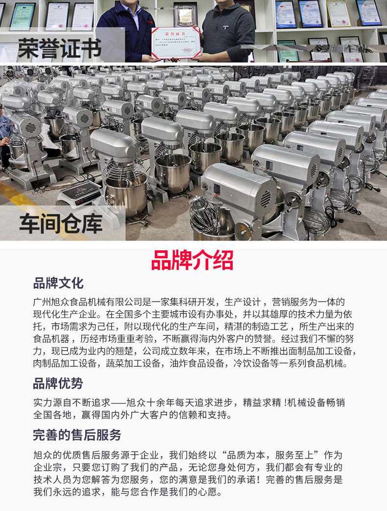 廣州旭眾食品機(jī)械有限公司是一家集科研開發(fā),生產(chǎn)設(shè)計(jì),營銷服務(wù)為一體的現(xiàn)代化生產(chǎn)企業(yè)?,F(xiàn)代化生產(chǎn)車間,精湛制造技術(shù),所產(chǎn)機(jī)械歷經(jīng)市場重重考驗(yàn),不斷贏得海內(nèi)外客戶的贊譽(yù)。