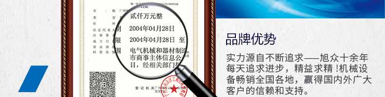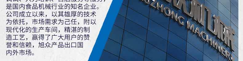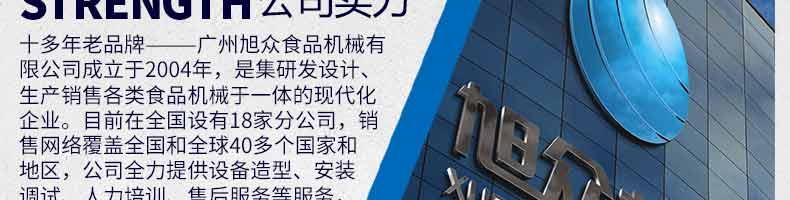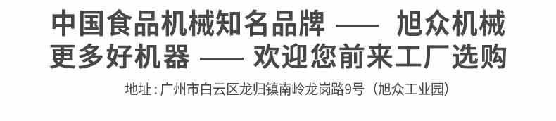 廣州旭眾食品機械有限公司是一家集科研開發(fā),生產(chǎn)設計,營銷服務為一體的現(xiàn)代化生產(chǎn)企業(yè)?,F(xiàn)代化生產(chǎn)車間,精湛制造技術(shù),所產(chǎn)機械歷經(jīng)市場重重考驗,不斷贏得海內(nèi)外客戶的贊譽。