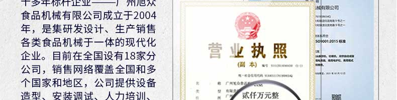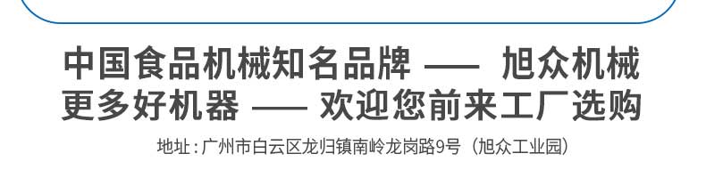 廣州旭眾食品機械有限公司是一家集科研開發(fā),生產(chǎn)設(shè)計,營銷服務(wù)為一體的現(xiàn)代化生產(chǎn)企業(yè)。現(xiàn)代化生產(chǎn)車間,精湛制造技術(shù),所產(chǎn)機械歷經(jīng)市場重重考驗,不斷贏得海內(nèi)外客戶的贊譽。