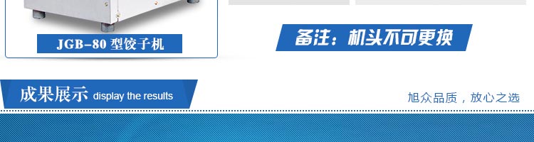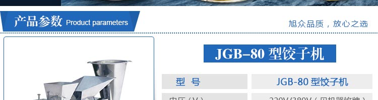 JGB-80型號餃子機(jī),本機(jī)是一款可生產(chǎn)各種肉餡、肉菜混合餡、全菜餡及其他種餡餃子的設(shè)備。包制出來的餃子可蒸、煮、炸、煎等多種調(diào)理。適用于賓館、飯店、餐廳、團(tuán)體食堂加工,幼兒園、速凍餃子生產(chǎn)。