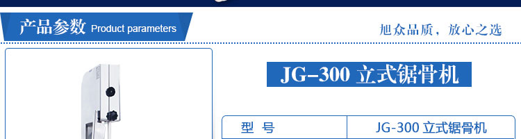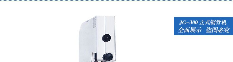 JG300 立式鋸骨機,適用于各類骨頭,冷凍肉,帶魚骨,冰塊,冷凍魚的分割。采用全不銹鋼材料制作,具有工作效率高,操作安全的特點。廣泛適用于食品加工廠,屠宰場,肉類加工廠等