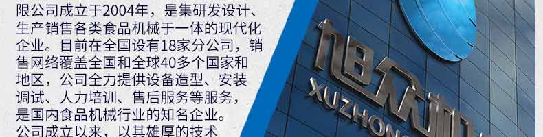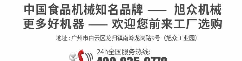 廣州旭眾食品機械有限公司是一家集科研開發(fā),生產(chǎn)設(shè)計,營銷服務為一體的現(xiàn)代化生產(chǎn)企業(yè)?,F(xiàn)代化生產(chǎn)車間,精湛制造技術(shù),所產(chǎn)機械歷經(jīng)市場重重考驗,不斷贏得海內(nèi)外客戶的贊譽。