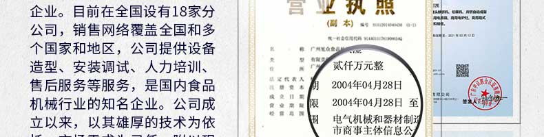 廣州旭眾食品機(jī)械有限公司是一家集科研開(kāi)發(fā),生產(chǎn)設(shè)計(jì),營(yíng)銷(xiāo)服務(wù)為一體的現(xiàn)代化生產(chǎn)企業(yè)?,F(xiàn)代化生產(chǎn)車(chē)間,精湛制造技術(shù),所產(chǎn)機(jī)械歷經(jīng)市場(chǎng)重重考驗(yàn),不斷贏得海內(nèi)外客戶(hù)的贊譽(yù)。