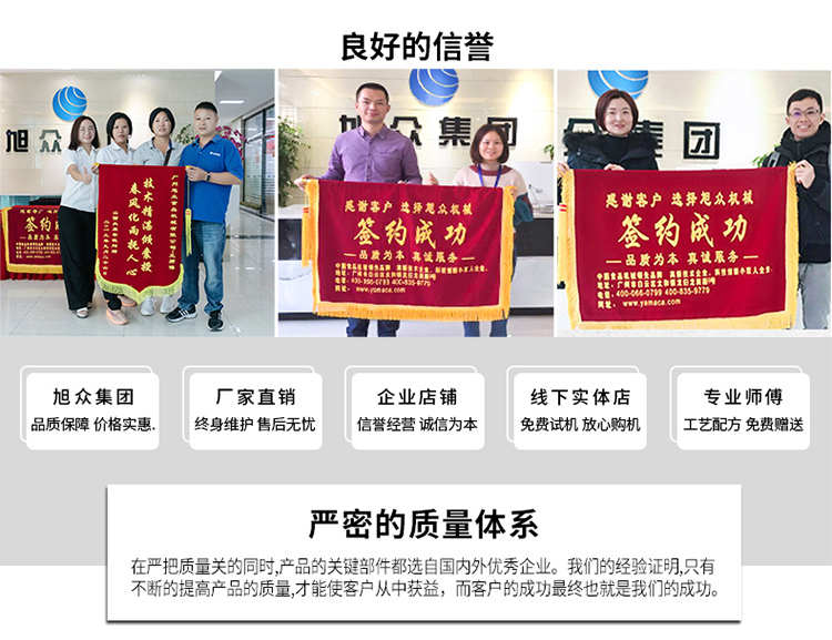 廣州旭眾食品機(jī)械有限公司是一家集科研開(kāi)發(fā),生產(chǎn)設(shè)計(jì),營(yíng)銷服務(wù)為一體的現(xiàn)代化生產(chǎn)企業(yè)?,F(xiàn)代化生產(chǎn)車間,精湛制造技術(shù),所產(chǎn)機(jī)械歷經(jīng)市場(chǎng)重重考驗(yàn),不斷贏得海內(nèi)外客戶的贊譽(yù)。