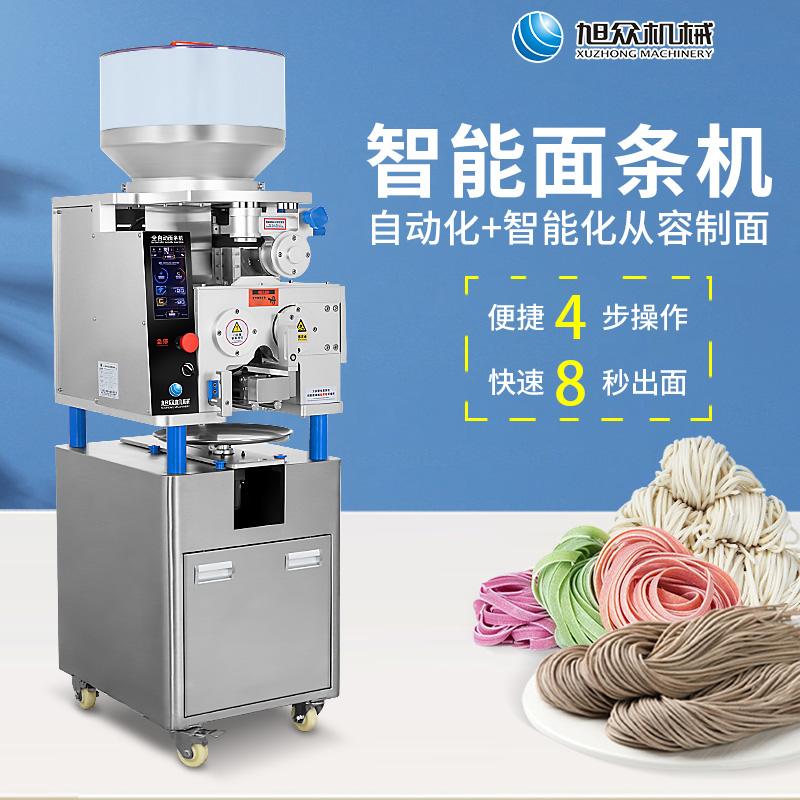 XZ-M800面條機,制作多種面條:拉面、小面、牛肉面、韭葉面板面、褲帯面、蔬菜面、水果面、雜糧面8秒快速出面人性化設計,更便捷更高效與同類型機器相比,出面更快、秒換刀具。全不銹鋼刀組全不銹鋼可拆卸刀組,一秒更換防腐蝕抗氧化,清洗方便。