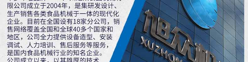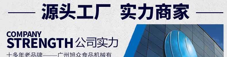 廣州旭眾食品機(jī)械有限公司是一家集科研開(kāi)發(fā),生產(chǎn)設(shè)計(jì),營(yíng)銷服務(wù)為一體的現(xiàn)代化生產(chǎn)企業(yè)?,F(xiàn)代化生產(chǎn)車(chē)間,精湛制造技術(shù),所產(chǎn)機(jī)械歷經(jīng)市場(chǎng)重重考驗(yàn),不斷贏得海內(nèi)外客戶的贊譽(yù)。