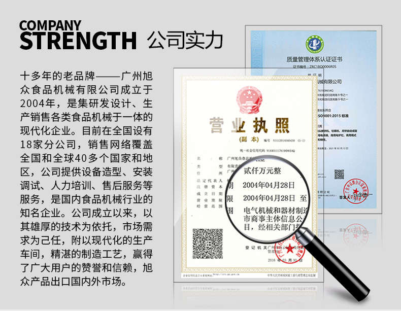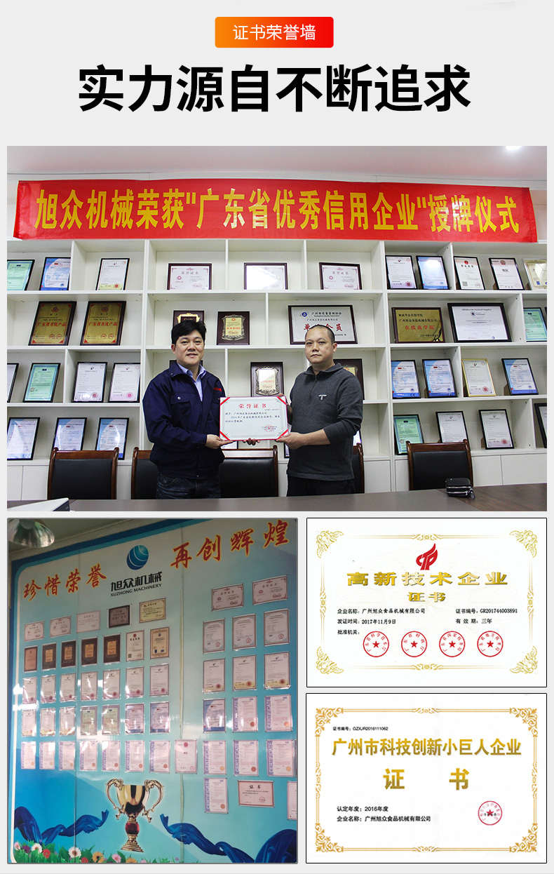 廣州旭眾食品機(jī)械有限公司是一家集科研開發(fā),生產(chǎn)設(shè)計(jì),營(yíng)銷服務(wù)為一體的現(xiàn)代化生產(chǎn)企業(yè)。現(xiàn)代化生產(chǎn)車間,精湛制造技術(shù),所產(chǎn)機(jī)械歷經(jīng)市場(chǎng)重重考驗(yàn),不斷贏得海內(nèi)外客戶的贊譽(yù)。