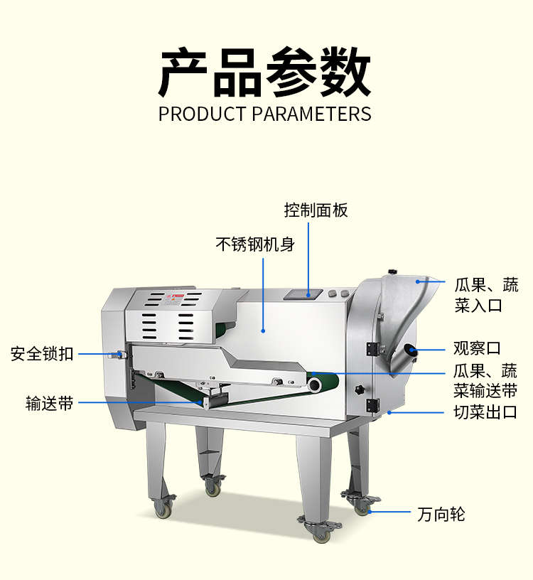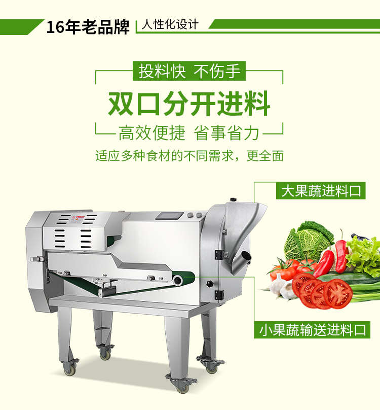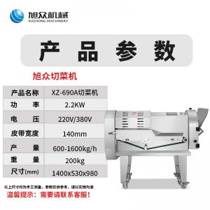 XZ-690A型多功能切菜機(jī),工作效率高,幫你省人工費(fèi)。1小時可切600kg-1600kg/h,1臺機(jī)器等于多名廚師同時為您工作。一機(jī)多用,可切瓜果、蔬菜、藥材,刀片可進(jìn)行更換,設(shè)計(jì)周到,結(jié)構(gòu)合理,簡單輕松應(yīng)對。