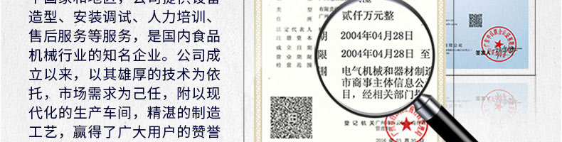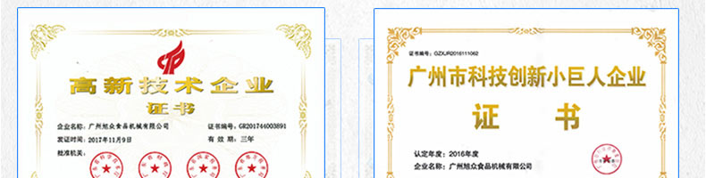 廣州旭眾食品機械有限公司是一家集科研開發(fā),生產(chǎn)設計,營銷服務為一體的現(xiàn)代化生產(chǎn)企業(yè)。現(xiàn)代化生產(chǎn)車間,精湛制造技術,所產(chǎn)機械歷經(jīng)市場重重考驗,不斷贏得海內(nèi)外客戶的贊譽。