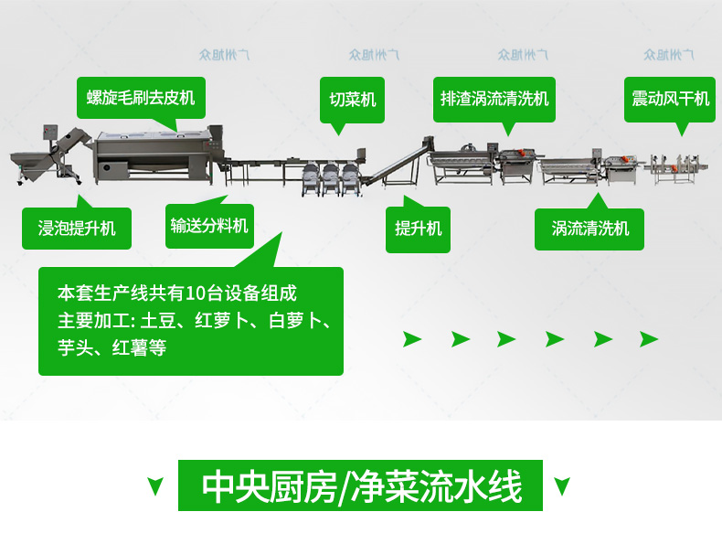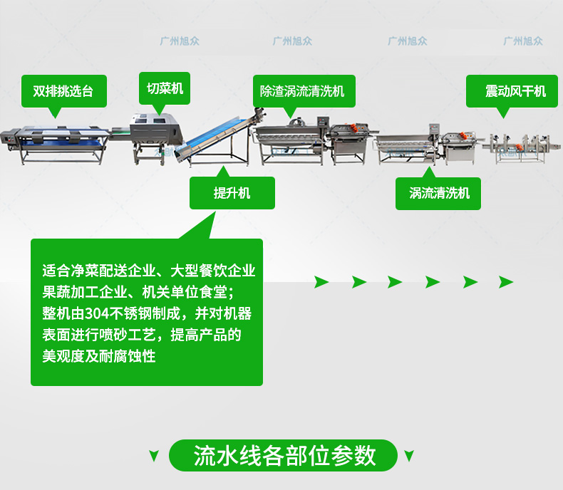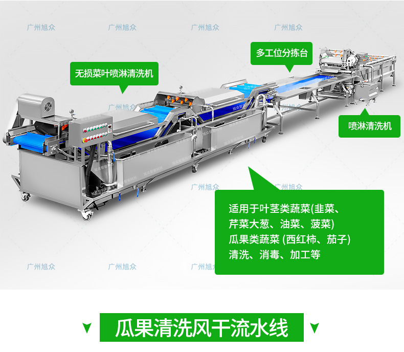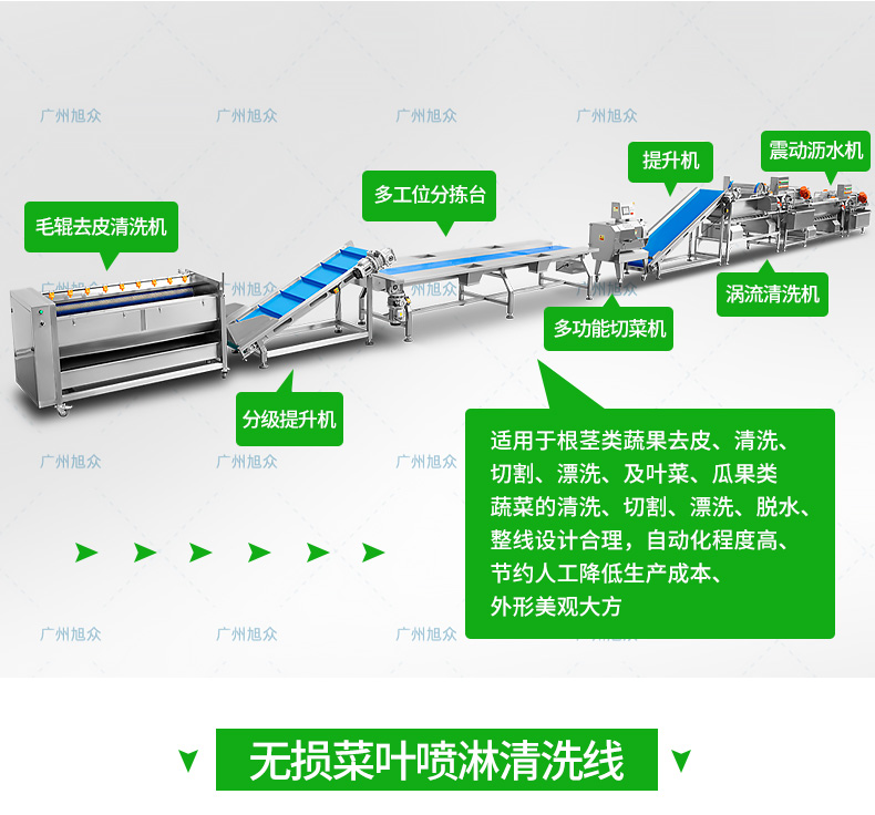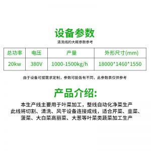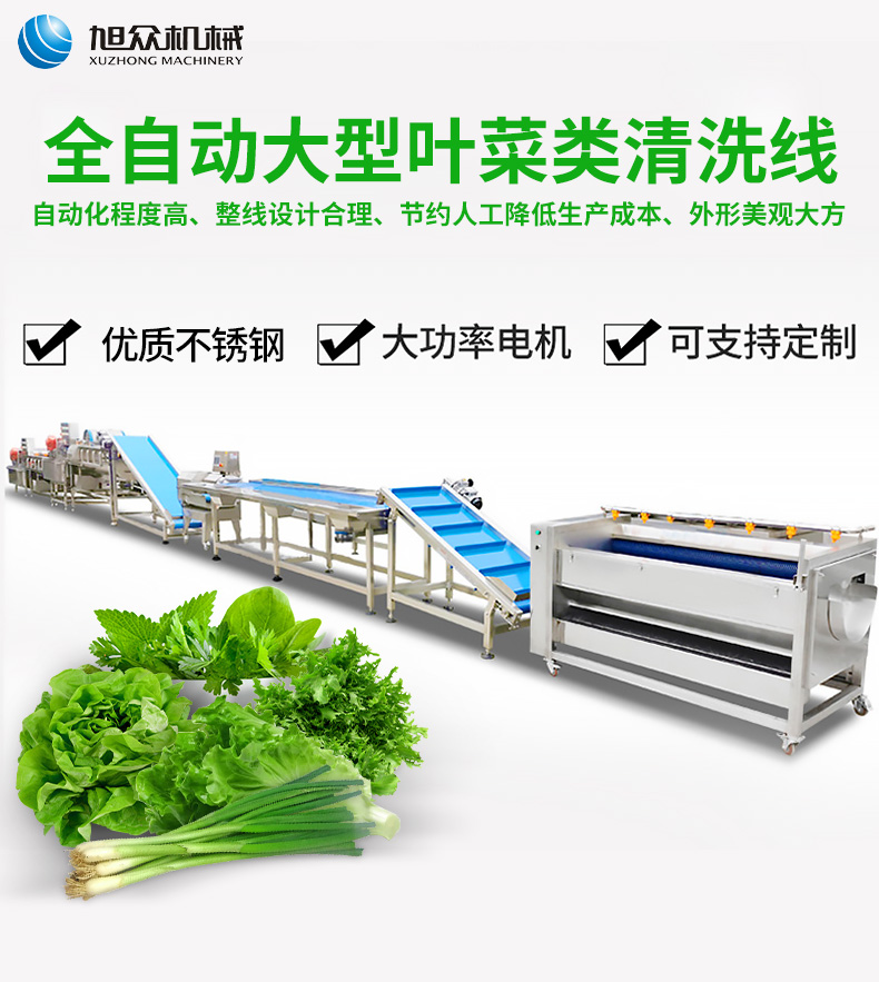 全自動(dòng)大型葉菜清洗線,自動(dòng)化程度高、整線設(shè)計(jì)合理、節(jié)約人工降低生產(chǎn)成本、外形美觀大方。主要用于葉菜加工,整線自動(dòng)化凈菜生產(chǎn)此線將切割、清洗、風(fēng)干設(shè)備連接成線,適合芹菜、韭菜菠菜、大白菜高麗菜、大蔥等葉菜類(lèi)蔬菜加工生產(chǎn)