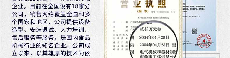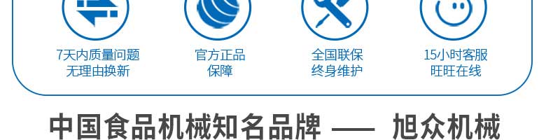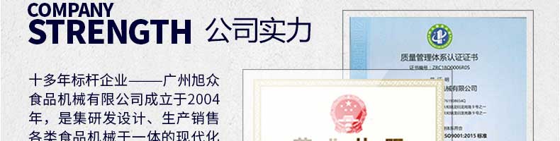 廣州旭眾食品機(jī)械有限公司是一家集科研開發(fā),生產(chǎn)設(shè)計,營銷服務(wù)為一體的現(xiàn)代化生產(chǎn)企業(yè)?,F(xiàn)代化生產(chǎn)車間,精湛制造技術(shù),所產(chǎn)機(jī)械歷經(jīng)市場重重考驗,不斷贏得海內(nèi)外客戶的贊譽。