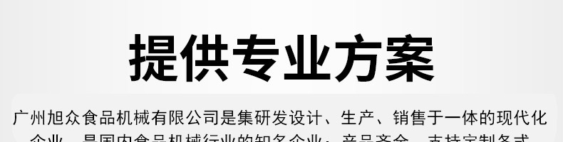 廣州旭眾食品機(jī)械有限公司是一家集科研開發(fā),生產(chǎn)設(shè)計,營銷服務(wù)為一體的現(xiàn)代化生產(chǎn)企業(yè)?,F(xiàn)代化生產(chǎn)車間,精湛制造技術(shù),所產(chǎn)機(jī)械歷經(jīng)市場重重考驗,不斷贏得海內(nèi)外客戶的贊譽(yù)。