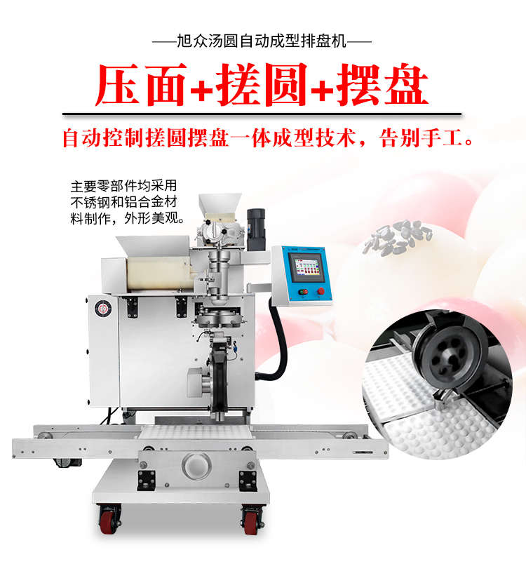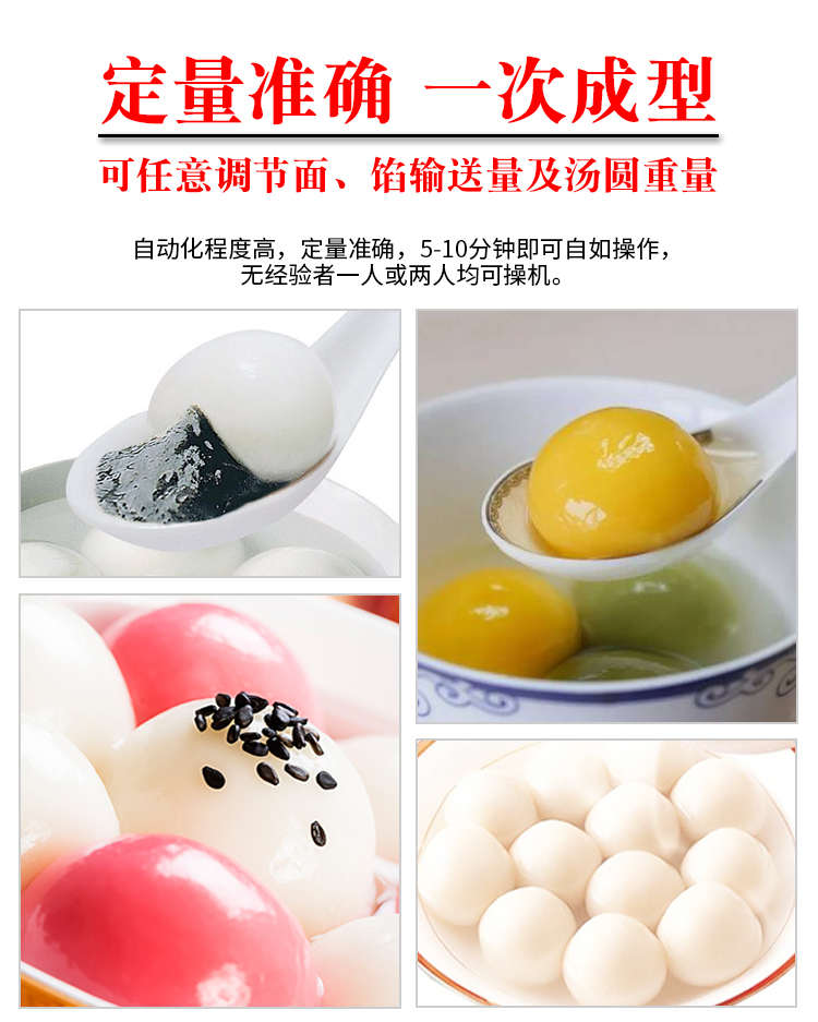 VFD-4000B湯圓機(jī),定量準(zhǔn)確自動(dòng)搓圓排盤(pán)成型大小均勻口感柔滑??芍谱鞲魇桨W食品,如湯圓、芝麻球、豆沙包、南瓜餅、奶黃包等