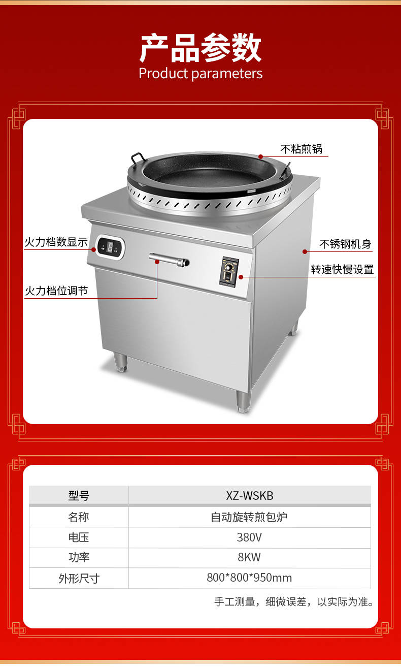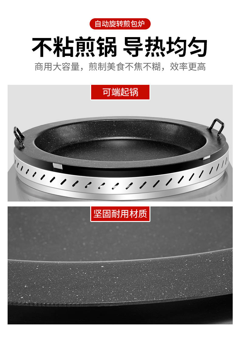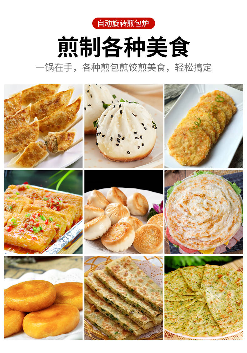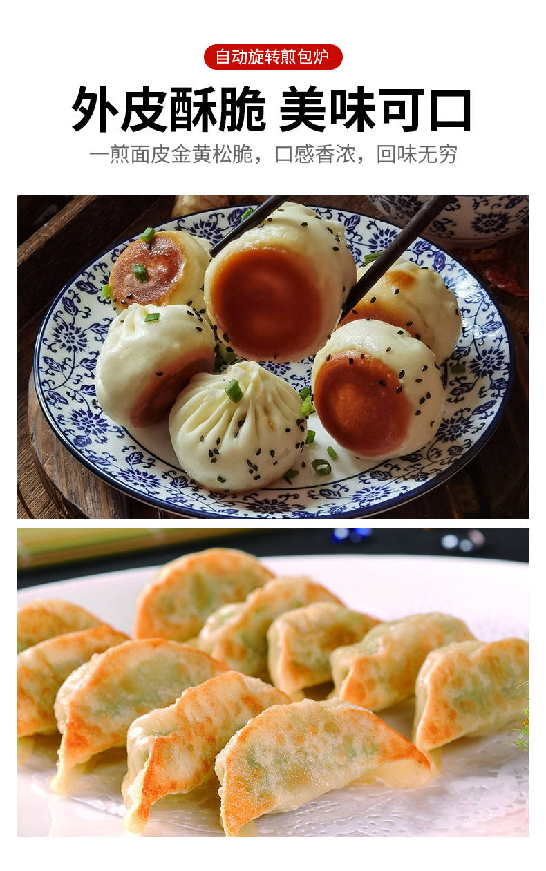 XZ-WSKB自動(dòng)旋轉(zhuǎn)煎包爐,煎制各種美食鍋在手,各種煎包煎餃煎美食,輕松搞定。自動(dòng)旋轉(zhuǎn)、受熱均勻煎鍋360°旋轉(zhuǎn)煎美食,省時(shí)省力,不焦不糊,高效率轉(zhuǎn)速可調(diào)快慢自由可調(diào)。