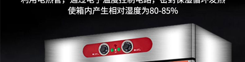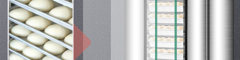 VF系列醒發(fā)箱,熱風循環(huán)、恒溫發(fā)酵。熱氣均勻分布,多盤發(fā)酵制作美味一樣到底。恒溫醒發(fā)箱完美解決利用電熱管,通過電子溫度控制電路,密封保濕循環(huán)發(fā)熱使箱內產生相對濕度為80-85%