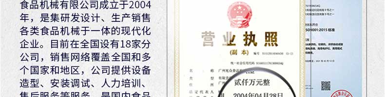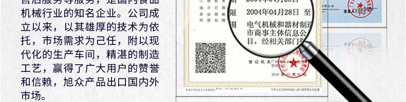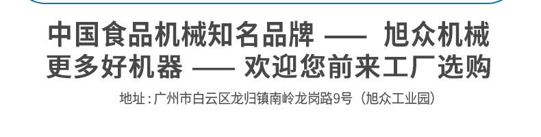 廣州旭眾食品機械有限公司是一家集科研開發(fā),生產(chǎn)設計,營銷服務為一體的現(xiàn)代化生產(chǎn)企業(yè)?,F(xiàn)代化生產(chǎn)車間,精湛制造技術(shù),所產(chǎn)機械歷經(jīng)市場重重考驗,不斷贏得海內(nèi)外客戶的贊譽。