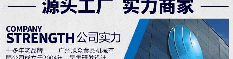 廣州旭眾食品機械有限公司是一家集科研開發(fā),生產(chǎn)設(shè)計,營銷服務為一體的現(xiàn)代化生產(chǎn)企業(yè)?,F(xiàn)代化生產(chǎn)車間,精湛制造技術(shù),所產(chǎn)機械歷經(jīng)市場重重考驗,不斷贏得海內(nèi)外客戶的贊譽。