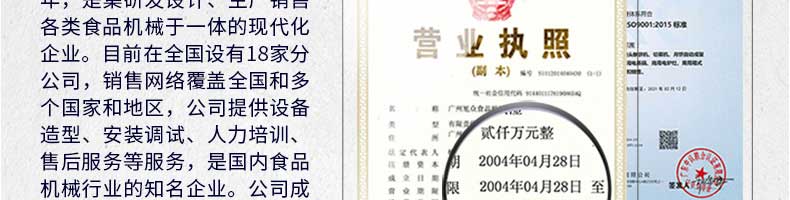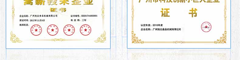 廣州旭眾食品機械有限公司是一家集科研開發(fā),生產(chǎn)設計,營銷服務為一體的現(xiàn)代化生產(chǎn)企業(yè)?,F(xiàn)代化生產(chǎn)車間,精湛制造技術,所產(chǎn)機械歷經(jīng)市場重重考驗,不斷贏得海內外客戶的贊譽。