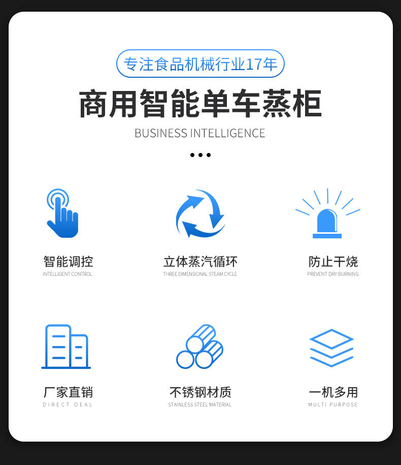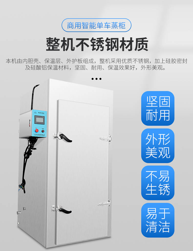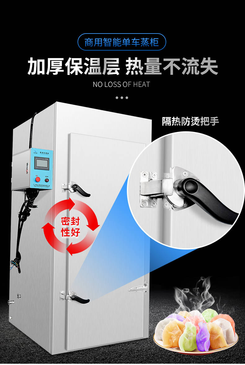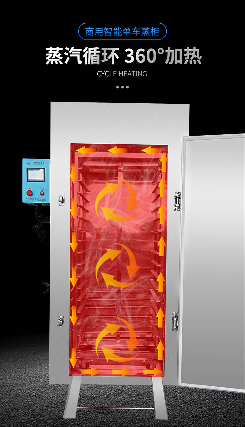 單車蒸柜,整機不銹鋼材質本機由內膽殼、保溫層、外護板組成,整機采用優(yōu)質不銹鋼,加上硅膠密封及硅酸鋁保溫材料,堅固、耐用、保溫效果好,外形美觀。循環(huán)均勻發(fā)熱,專門用于發(fā)熱管干燒空氣,溫度任意調節(jié),讓食物口感怡到好吃